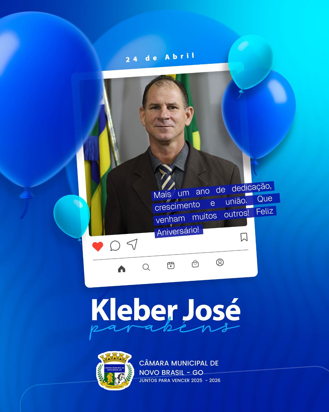 Neste dia especial, a Câmara Municipal de Novo Brasil-GO registra seus cumprimentos ao vereador Marcio Antônio por mais um ano de vida,…